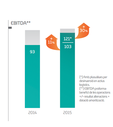 Al tancament del 2015, els ingressos d'explotació del perímetre de gestió de Saba se situen en els 240 milions d'euros, mentre que l'EBITDA arriba als 121 milions d'euros. Sense considerar l'impacte de les desinversions en parcs logístics, la xifra d'ingressos seria de 222 milions i la d'EBITDA, de 103 milions, amb un marge del 46%, que ha evolucionat de manera creixent els últims anys, malgrat un entorn de caiguda de l'activitat, gràcies principalment a la implantació de mesures de millora i d'eficiència i a les noves operacions de desenvolupament.